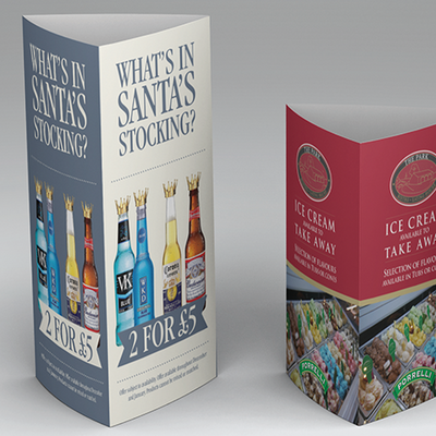 Table talkers are perfect for bars or restaurants that want to advertise their specials or promotions. Placed at the bar or on tables, these display pieces are sure to catch people’s eye while they wait. Make your table talker more durable and stain-proof with a lamination.