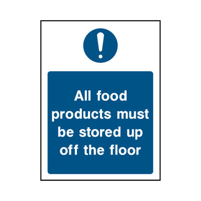The All Food Products Must Be Stored Up Off The Floor sign falls under the Food Processing & Hygeine category. This sign is commonly used in various settings, including workplaces, schools, and public spaces, to enhance safety and compliance. This sign complies with UK health and safety stan