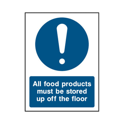 The All Food Products Must Be Stored Up Off The Floor sign falls under the Food Processing & Hygeine category. This sign is commonly used in various settings, including workplaces, schools, and public spaces, to enhance safety and compliance. This sign complies with UK health and safety stan