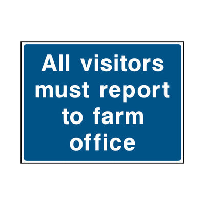 The All Visitors Must Report To Farm Office sign falls under the Countryside & Agriculture category. This sign is commonly used in various settings, including workplaces, schools, and public spaces, to enhance safety and compliance. This sign complies with UK health and safety standards, inc