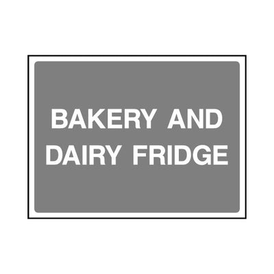 The Bakery And Dairy Fridge sign falls under the Food Processing & Hygeine category. This sign is commonly used in various settings, including workplaces, schools, and public spaces, to enhance safety and compliance. This sign complies with UK health and safety standards, including BS ISO 70
