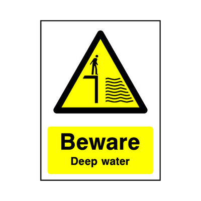 The Beware - Deep Water sign falls under the Water Safety category. This sign is commonly used in various settings, including workplaces, schools, and public spaces, to enhance safety and compliance. This sign complies with UK health and safety standards, including BS ISO 7010, ensuring that it