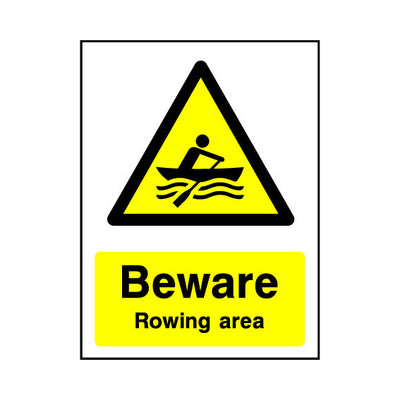 The Beware - Rowing Area sign falls under the Water Safety category. This sign is commonly used in various settings, including workplaces, schools, and public spaces, to enhance safety and compliance. This sign complies with UK health and safety standards, including BS ISO 7010, ensuring that it