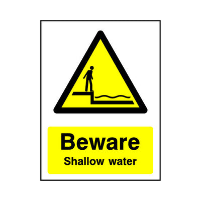 The Beware - Shallow Water sign falls under the Water Safety category. This sign is commonly used in various settings, including workplaces, schools, and public spaces, to enhance safety and compliance. This sign complies with UK health and safety standards, including BS ISO 7010, ensuring that