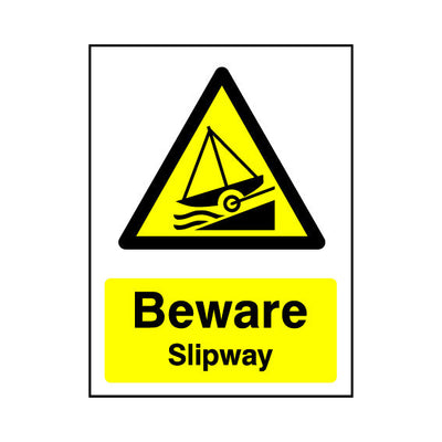 The Beware - Slipway sign falls under the Water Safety category. This sign is commonly used in various settings, including workplaces, schools, and public spaces, to enhance safety and compliance. This sign complies with UK health and safety standards, including BS ISO 7010, ensuring that it mee