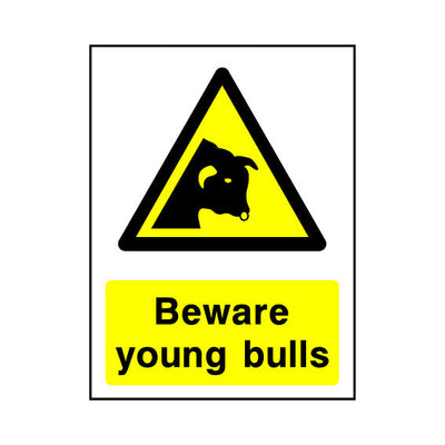 The Beware - Young Bulls sign falls under the Countryside & Agriculture category. This sign is commonly used in various settings, including workplaces, schools, and public spaces, to enhance safety and compliance. This sign complies with UK health and safety standards, including BS ISO 7010,
