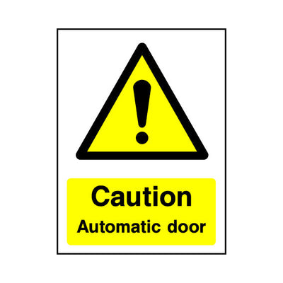 The Caution - Automatic Door sign falls under the General Warning category. This sign is commonly used in various settings, including workplaces, schools, and public spaces, to enhance safety and compliance. This sign complies with UK health and safety standards, including BS ISO 7010, ensuring