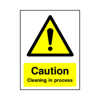 The Caution - Cleaning In Process sign falls under the General Warning category. This sign is commonly used in various settings, including workplaces, schools, and public spaces, to enhance safety and compliance. This sign complies with UK health and safety standards, including BS ISO 7010, ensu