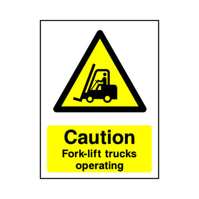 The Caution - Fork-lift Trucks Operating sign falls under the General Warning category. This sign is commonly used in various settings, including workplaces, schools, and public spaces, to enhance safety and compliance. This sign complies with UK health and safety standards, including BS ISO 701