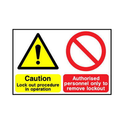 The Caution - Lock Out Procedure In Operation / Authorised Personnel Only sign falls under the Lockout Signs category. This sign is commonly used in various settings, including workplaces, schools, and public spaces, to enhance safety and compliance. This sign complies with UK health and safety