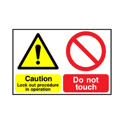The Caution - Lock Out Procedure In Operation / Do Not Touch sign falls under the Lockout Signs category. This sign is commonly used in various settings, including workplaces, schools, and public spaces, to enhance safety and compliance. This sign complies with UK health and safety standards, in
