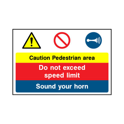 The Caution Pedestrian Area - Do Not Exceed Speed Limit sign falls under the Construction category. This sign is commonly used in various settings, including workplaces, schools, and public spaces, to enhance safety and compliance. This sign complies with UK health and safety standards, includin