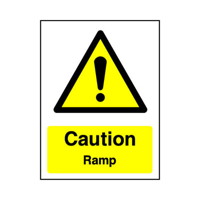 The Caution - Ramp sign falls under the General Warning category. This sign is commonly used in various settings, including workplaces, schools, and public spaces, to enhance safety and compliance. This sign complies with UK health and safety standards, including BS ISO 7010, ensuring that it me