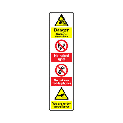The Danger - Explosive Atmosphere V2 (fuel Station Safety) sign falls under the Garage Signs category. This sign is commonly used in various settings, including workplaces, schools, and public spaces, to enhance safety and compliance. This sign complies with UK health and safety standards, inclu
