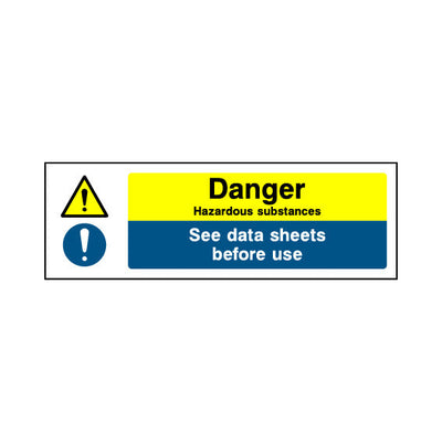 The Danger - Hazardous Substances - See Data Sheet sign falls under the Chemical Danger category. This sign is commonly used in various settings, including workplaces, schools, and public spaces, to enhance safety and compliance. This sign complies with UK health and safety standards, including