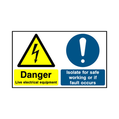 The Danger - Live Electrical Equipment - Isolate For Safe Working Or A Fault sign falls under the Multi Purpose category. This sign is commonly used in various settings, including workplaces, schools, and public spaces, to enhance safety and compliance. This sign complies with UK health and safe