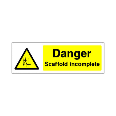 The Danger - Scaffold Incomplete sign falls under the General Warning category. This sign is commonly used in various settings, including workplaces, schools, and public spaces, to enhance safety and compliance. This sign complies with UK health and safety standards, including BS ISO 7010, ensur