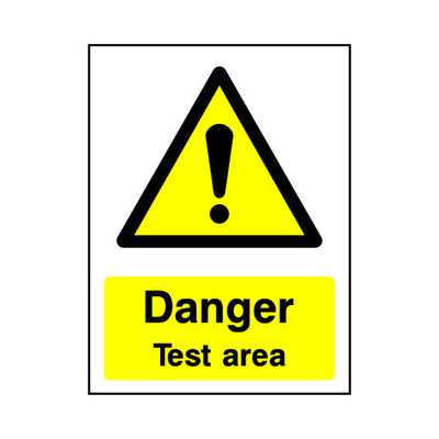 The Danger - Test Area sign falls under the Machinery Warning category. This sign is commonly used in various settings, including workplaces, schools, and public spaces, to enhance safety and compliance. This sign complies with UK health and safety standards, including BS ISO 7010, ensuring that