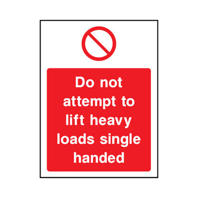 The Do Not Attempt To Lift Heavy Loads Single Handed sign falls under the General Prohibition category. This sign is commonly used in various settings, including workplaces, schools, and public spaces, to enhance safety and compliance. This sign complies with UK health and safety standards, incl