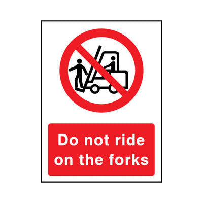 The Do Not Ride On The Forks sign falls under the Machinery Prohibition category. This sign is commonly used in various settings, including workplaces, schools, and public spaces, to enhance safety and compliance. This sign complies with UK health and safety standards, including BS ISO 7010, ens
