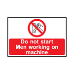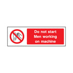 The Do Not Start Men Working On Machine sign falls under the Lockout Signs category. This sign is commonly used in various settings, including workplaces, schools, and public spaces, to enhance safety and compliance. This sign complies with UK health and safety standards, including BS ISO 7010,