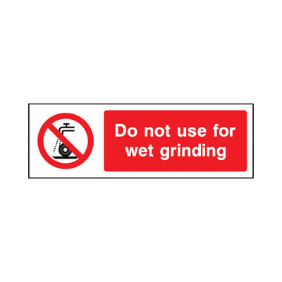 The Do Not Use For Wet Grinding sign falls under the Machinery Prohibition category. This sign is commonly used in various settings, including workplaces, schools, and public spaces, to enhance safety and compliance. This sign complies with UK health and safety standards, including BS ISO 7010,
