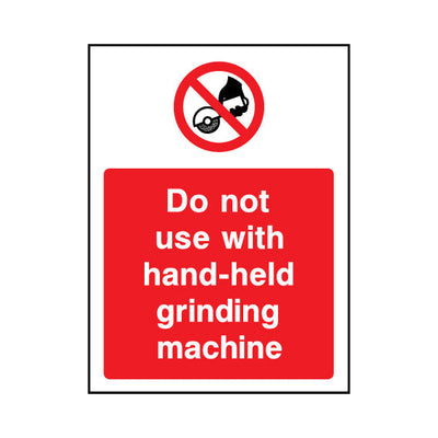 The Do Not Use With Hand-held Grinding Machine sign falls under the Machinery Prohibition category. This sign is commonly used in various settings, including workplaces, schools, and public spaces, to enhance safety and compliance. This sign complies with UK health and safety standards, includin