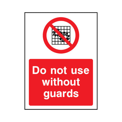 The Do Not Use Without Guards sign falls under the Machinery Prohibition category. This sign is commonly used in various settings, including workplaces, schools, and public spaces, to enhance safety and compliance. This sign complies with UK health and safety standards, including BS ISO 7010, en