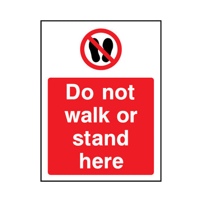 The Do Not Walk Or Stand Here sign falls under the General Prohibition category. This sign is commonly used in various settings, including workplaces, schools, and public spaces, to enhance safety and compliance. This sign complies with UK health and safety standards, including BS ISO 7010, ensu