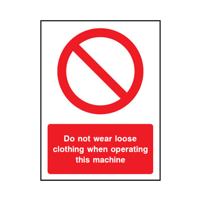 The Do Not Wear Loose Clothing When Operating This Machine sign falls under the Machinery Prohibition category. This sign is commonly used in various settings, including workplaces, schools, and public spaces, to enhance safety and compliance. This sign complies with UK health and safety standar