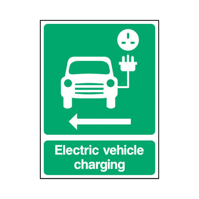 The Electric Vehicle Charging (arrow Left) sign falls under the Parking category. This sign is commonly used in various settings, including workplaces, schools, and public spaces, to enhance safety and compliance. This sign complies with UK health and safety standards, including BS ISO 7010, ens