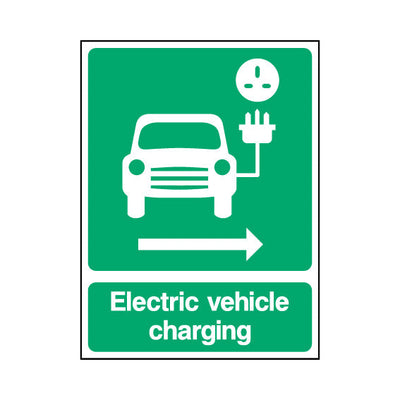 The Electric Vehicle Charging (arrow Right) sign falls under the Parking category. This sign is commonly used in various settings, including workplaces, schools, and public spaces, to enhance safety and compliance. This sign complies with UK health and safety standards, including BS ISO 7010, en