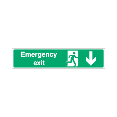 The Emergency Exit Arrow Down sign falls under the Emergency Escape category. This sign is commonly used in various settings, including workplaces, schools, and public spaces, to enhance safety and compliance. This sign complies with UK health and safety standards, including BS ISO 7010, ensurin