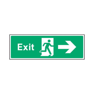 The Exit Arrow Right sign falls under the Emergency Escape category. This sign is commonly used in various settings, including workplaces, schools, and public spaces, to enhance safety and compliance. This sign complies with UK health and safety standards, including BS ISO 7010, ensuring that it