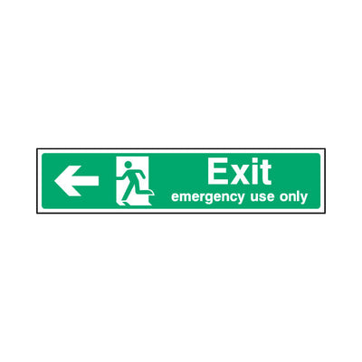 The Exit - Emergency Une Only Arrow Left sign falls under the Emergency Escape category. This sign is commonly used in various settings, including workplaces, schools, and public spaces, to enhance safety and compliance. This sign complies with UK health and safety standards, including BS ISO 70