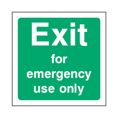 The Exit - For Emergency Use Only (square) sign falls under the Emergency Escape category. This sign is commonly used in various settings, including workplaces, schools, and public spaces, to enhance safety and compliance. This sign complies with UK health and safety standards, including BS ISO