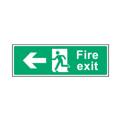 The Fire Exit Arrow Left sign falls under the Emergency Escape category. This sign is commonly used in various settings, including workplaces, schools, and public spaces, to enhance safety and compliance. This sign complies with UK health and safety standards, including BS ISO 7010, ensuring tha