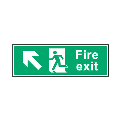 The Fire Exit Diagonal Arrow Left (up) sign falls under the Emergency Escape category. This sign is commonly used in various settings, including workplaces, schools, and public spaces, to enhance safety and compliance. This sign complies with UK health and safety standards, including BS ISO 7010