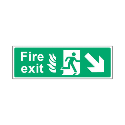 The Fire Exit V2 Diagonal Arrow Right (down) sign falls under the Emergency Escape category. This sign is commonly used in various settings, including workplaces, schools, and public spaces, to enhance safety and compliance. This sign complies with UK health and safety standards, including BS IS