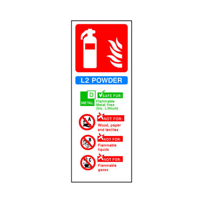 The Fire Extinguisher Use (L2 Powder) sign falls under the Fire Equipment category. This sign is commonly used in various settings, including workplaces, schools, and public spaces, to enhance safety and compliance. This sign complies with UK health and safety standards, including BS ISO 7010, ensuring that it meets legal requirements for safety signage. By displaying this sign, you contribute to creating a safer environment while adhering to regulations. At One Printer, we make it easy to order the exact product you need. You can select from a range of materials and finishing options to suit your specific requirements. Our available materials include 1mm PVC, 3mm Foamex, 3mm Dibond, self-adhesive vinyl, anti-slip floor graphics, and removable magnetic. Finishing options include 3M double-sided tape or drill holes for easy installation. With One Printer, you can be confident that your signage meets the highest standards of safety, durability, and customisation, all backed by our expert customer support team. H&S Sign Product Code: FE086.