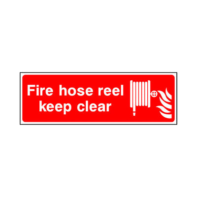 The Fire Hose Reel - Keep Clear & Icon sign falls under the Fire Equipment category. This sign is commonly used in various settings, including workplaces, schools, and public spaces, to enhance safety and compliance. This sign complies with UK health and safety standards, including BS ISO 70