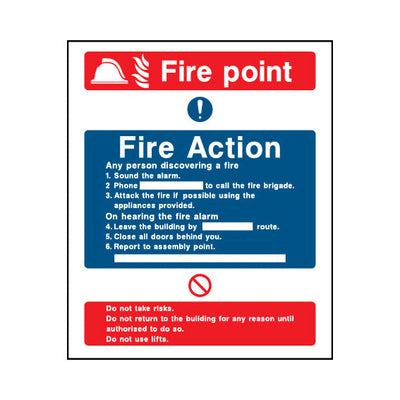 The Fire Point & Fire Action sign falls under the Fire Action category. This sign is commonly used in various settings, including workplaces, schools, and public spaces, to enhance safety and compliance. This sign complies with UK health and safety standards, including BS ISO 7010, ensuring