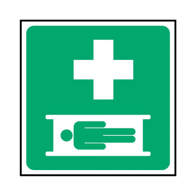 The First Aid Emergency Stretcher - Icon Only (square) sign falls under the First Aid category. This sign is commonly used in various settings, including workplaces, schools, and public spaces, to enhance safety and compliance. This sign complies with UK health and safety standards, including BS
