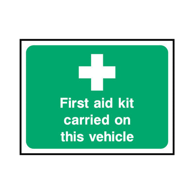The First Aid Kit Carried On This Vehicle sign falls under the First Aid category. This sign is commonly used in various settings, including workplaces, schools, and public spaces, to enhance safety and compliance. This sign complies with UK health and safety standards, including BS ISO 7010, en