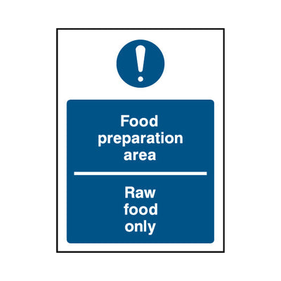 The Food Preparation Area - Raw Food Only sign falls under the Food Processing & Hygeine category. This sign is commonly used in various settings, including workplaces, schools, and public spaces, to enhance safety and compliance. This sign complies with UK health and safety standards, inclu