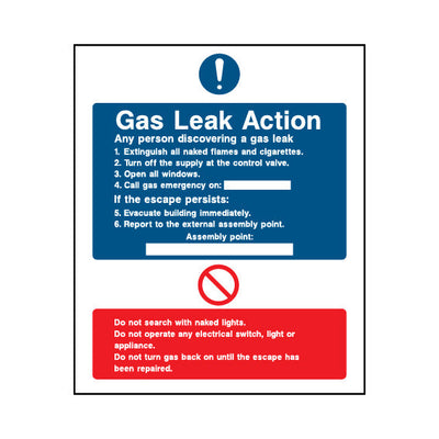 The Gas Leak Action sign falls under the Fire Action category. This sign is commonly used in various settings, including workplaces, schools, and public spaces, to enhance safety and compliance. This sign complies with UK health and safety standards, including BS ISO 7010, ensuring that it meets