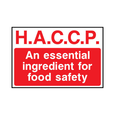 The H.A.C.C.P. - An Essential Ingredient For Food Safety sign falls under the Food Processing & Hygeine category. This sign is commonly used in various settings, including workplaces, schools, and public spaces, to enhance safety and compliance. This sign complies with UK health and safety s