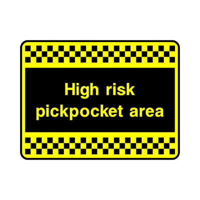 The High Risk Pickpocket Area sign falls under the Security category. This sign is commonly used in various settings, including workplaces, schools, and public spaces, to enhance safety and compliance. This sign complies with UK health and safety standards, including BS ISO 7010, ensuring that i