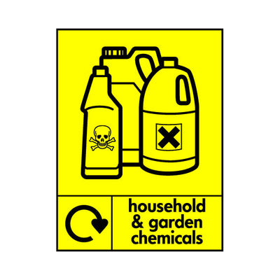 The Household & Garden Chemicals (Symbol Top & Recycling) sign falls under the Household Hazardous Waste category. This sign is commonly used in various settings, including workplaces, schools, and public spaces, to enhance safety and compliance. This sign complies with UK health and saf