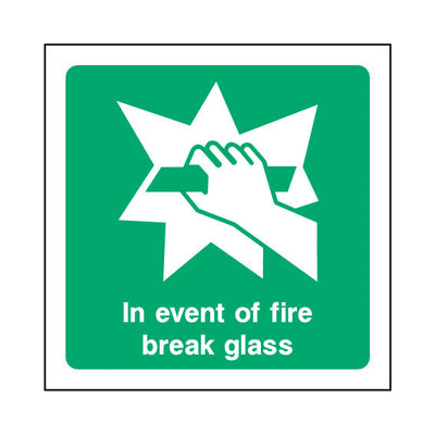 The In Event Of Fire Break Glass (square) sign falls under the Emergency Escape category. This sign is commonly used in various settings, including workplaces, schools, and public spaces, to enhance safety and compliance. This sign complies with UK health and safety standards, including BS ISO 7
